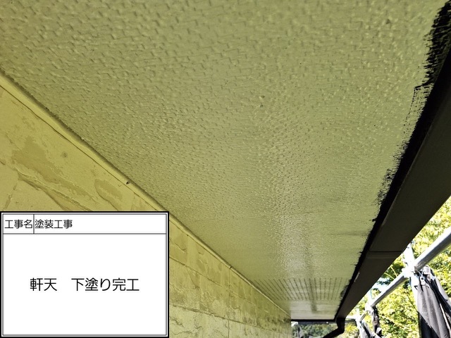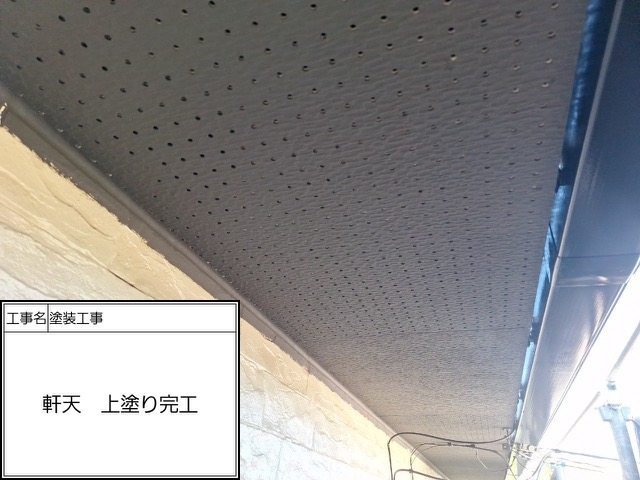 ※軒天塗装において色が濃くなればなるほど技術が必要です。とにかくなれていない業者だとムラだらけでひどくなります。下請け施工業社はまず元請から依頼されたら嫌がる事間違いなしです。ハローペイントなら何軒も暗い色やこだわりの色で仕上げてきてますので御手のものです、喜んで承ります。下塗り