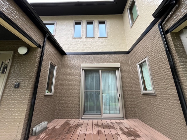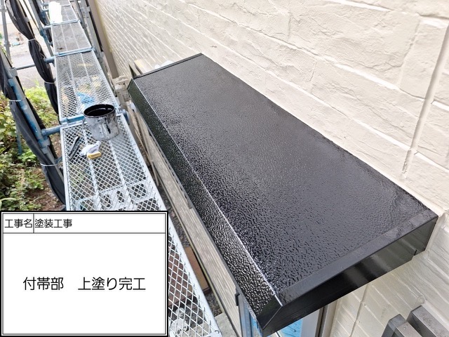 軒天アクセントカラー塗装※軒天が白というのは単なる固定概念で最近の建築物は割と暗めが流行りで、塗り替え塗装工事で暗めの色を入れれば今風のお家に生まれ変わります。白じゃ実現出来ない雰囲気がお好みの方はお問い合わせお待ちしております。