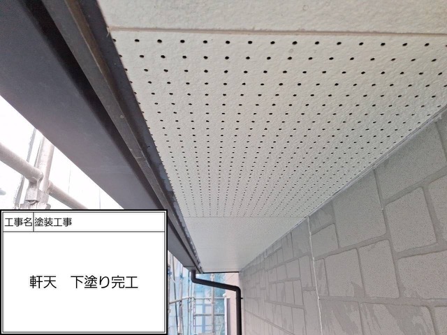 軒天もサイディングだったので外壁と同じ下塗り材を使用しました。